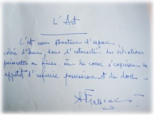 Ensuite, Aline Français n'a jamais cessé de peindre sur tous supports (papier, bois, toile) à l'aquarelle, huile et acrylique, tout en élevant ses cinq enfants.